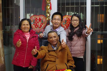 我叫茶兴华(上图坐轮椅者),今年55岁,妻罗秀英,58岁,昌宁大田坝清河下寨人。2007年儿子要去昆明读书,因家里经济困难,我就外出务工,不幸意外发生,腰椎骨被土方打断,肋骨也断了3根,医治结果为高位截瘫……这10多年来全靠妻在护理我,在家乡8年,她生活重担一肩挑。受2015年10.30地震影响,家里的房屋已临坍塌,不能再居住了。儿子毕业在保山务工,我和妻子就来到保山治疗租公租房暂住。儿子已结婚,必须照顾四位老人,每年要交房租上万元。市人民医院叫转昆明治疗,我坚决要求不去,不给孩子增加负担,只做保守治疗。
